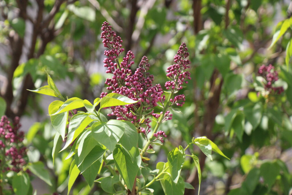 Прямо возле калитки растет сирень. Интересно наблюдать за ней, пока она растет.