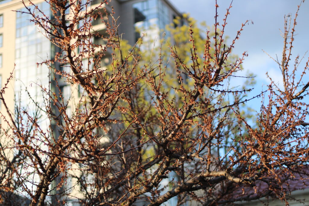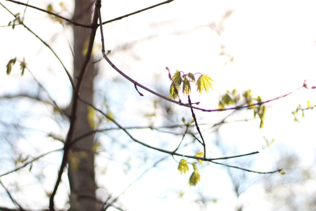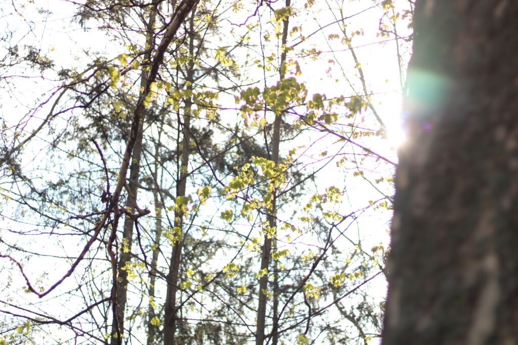 Свет солнца создает интересные эффекты, когда оно прячется за деревом.