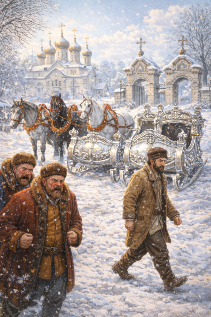 У того богача был друг, еще богаче. И у обоих у них были роскошные сани, одинаковые абсолютно, посеребренные, запряженные тройками лошадей. Ходя в местную церковь, они всегда ставили эти сани прямо возле ворот церкви. Когда простые люди проходили мимо этих двух саней, они поклонялись сначала саням, а уже потом храму и все знали, что сани защитят их храм, потому что не было тех, кто проходил бы мимо и не поклонился бы им.