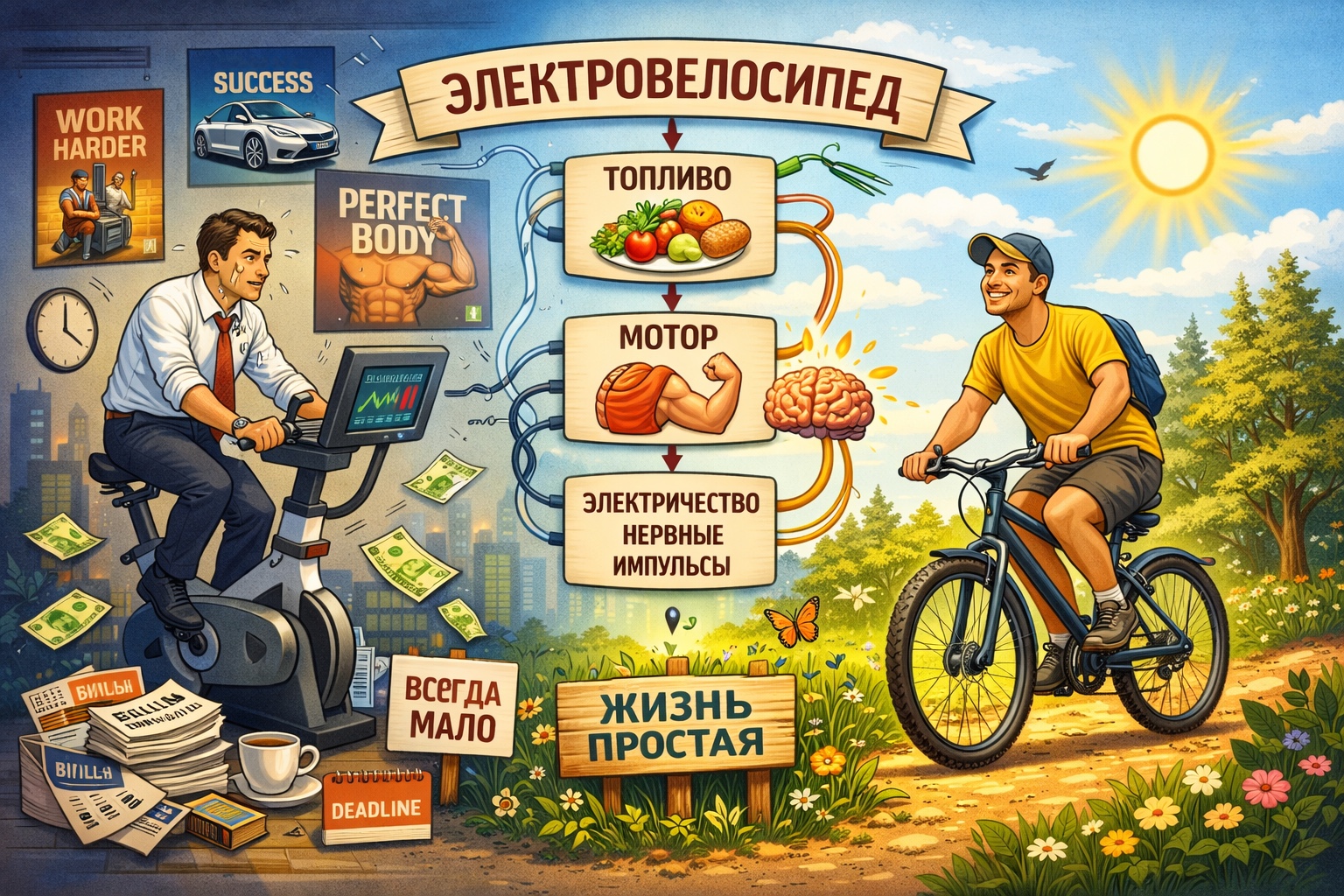 Современный человек — существо изобретательное. Особенно когда речь идёт о том, как не делать простые вещи простым способом. Чтобы покрутить педали, он сначала находит работу, на которой долго сидит в неудобной позе. Потом тратит часть жизни, чтобы заработать деньги. Потом относит эти деньги в фитнес-центр. Потом садится на велотренажёр. И, наконец, крутит педали — неподвижно, глядя … Читать далее